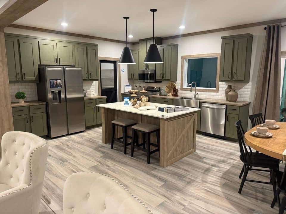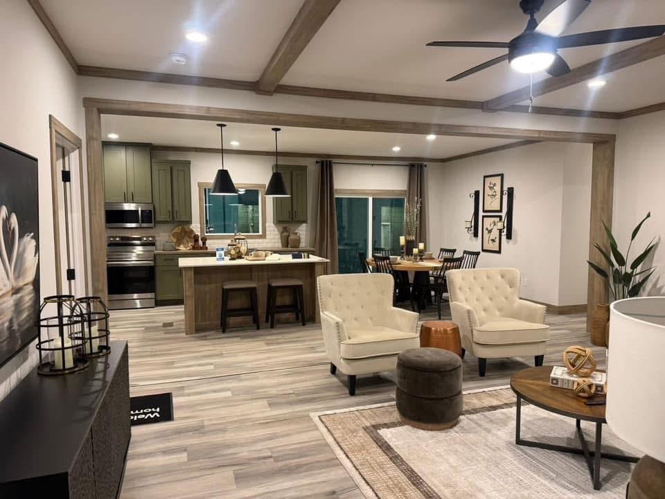including all of the upgrades/options shown, delivery and tiedowns available, the ductless alc and heat system installed, one set of temporary, wooden steps, manufactures warranty, plus an extended warranty. pricing cannot be guaranteed for future orders as prices are subject to change